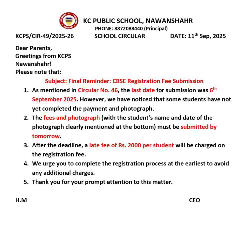Final Reminder: CBSE Registration Fee Submission circular Final Reminder: CBSE Registration Fee Submission admKCPSnsrADMIN September 11, 2025 45 views