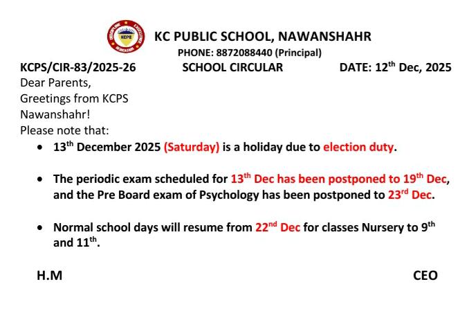 13th December 2025 is a holiday due to election duty. circular 13th December 2025 is a holiday due to election duty. admKCPSnsrADMIN December 12, 2025 57 views